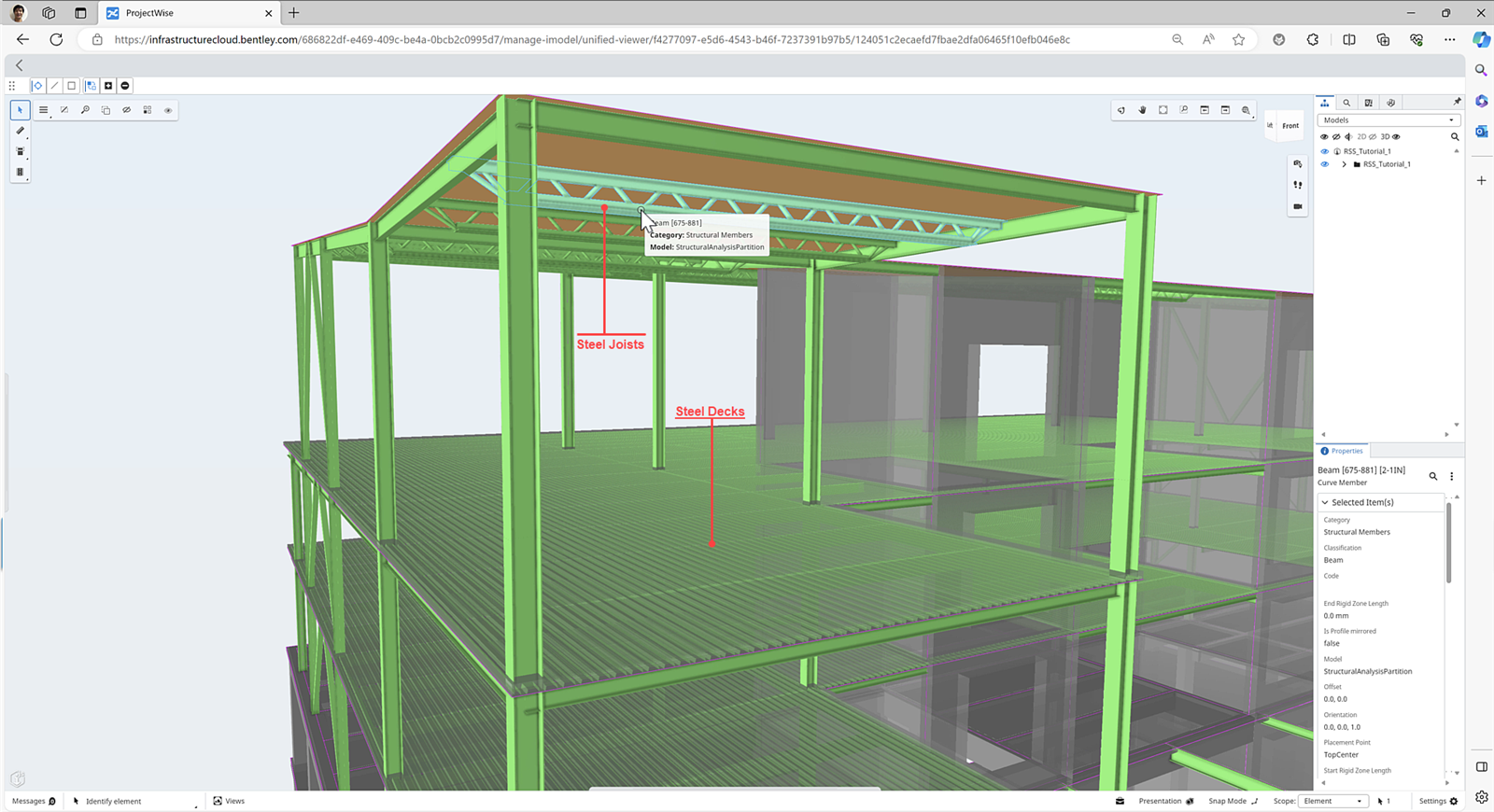 Steel Decks and Joists are now fully supported on Bentley Infrastructure Cloud. This enhancement particularly benefits RAM Structural System users.