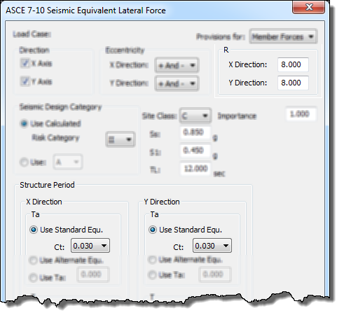 In ASCE 7-10 the value of R given for Buckling Restrained Braced Frames is 8. Furthermore, in the equation for the Approximate Fundamental Period, Ta (Eq. 12.8-7), Buckling Restrained Braced Frames get the more favorable value of Ct of 0.030.  These are specified in Loads – Load Cases when using the program’s seismic load generation features.