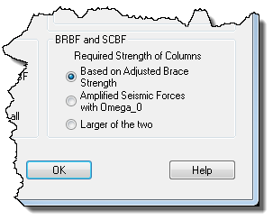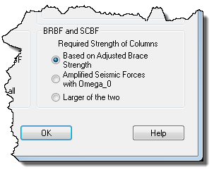 In the Steel – Seismic Provisions mode the seismic provision requirements for AISC 341-05 and AISC 341-10 ASD and LRFD have been implemented for buckling restrained braces. Select one of those codes in the Criteria – Codes command. In that dialog there are also options on how the required strength of columns is to be calculated: Based on Adjusted Brace Strength, Amplified Seismic Forces with Omega_0, or Larger of the two. When the option to use the Adjusted Brace Strength is selected the program calculates the force on the column assuming the forces in the braces correspond to their adjusted strength, using the Beta and Omega factors that were either calculated by the program or assigned by the user. It appears that the first option is what is required by the Specification, but in practice some engineers also consider the Omega_0 level forces, to be conservative. Be cautious with the second option, however, because it isn't necessarily conservative; if it is desired to consider the Omega_0 level forces it is generally better to select the third option rather than the second option.