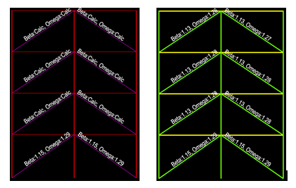 Before the Process – Member Code Check command is performed the View – Members command can be used to show whether the Beta and Omega values are to be calculated or have been user-assigned; if to be calculated it will show “Calc”, if user-assigned it will show the values assigned. After the Process – Member Code Check command has been performed the View – Members command can be used to show the actual values used.