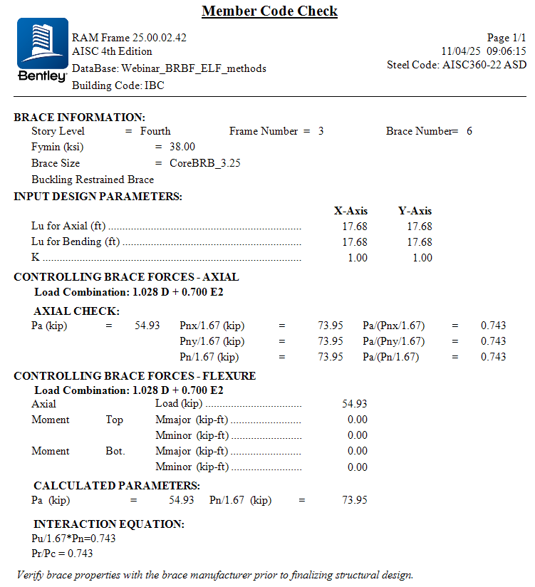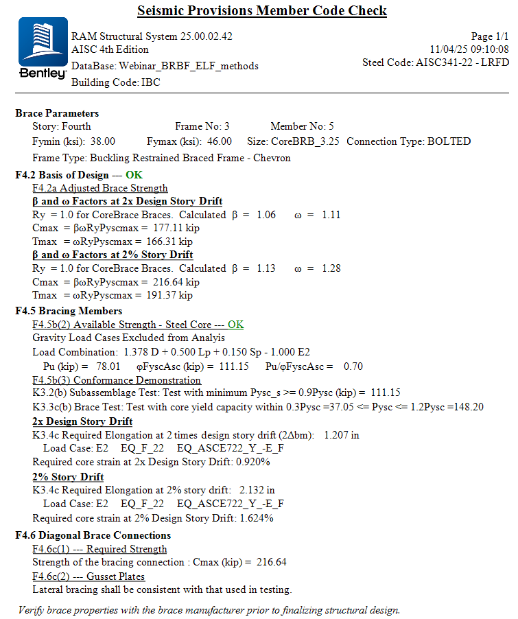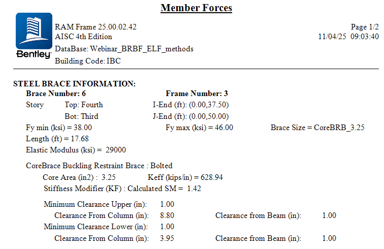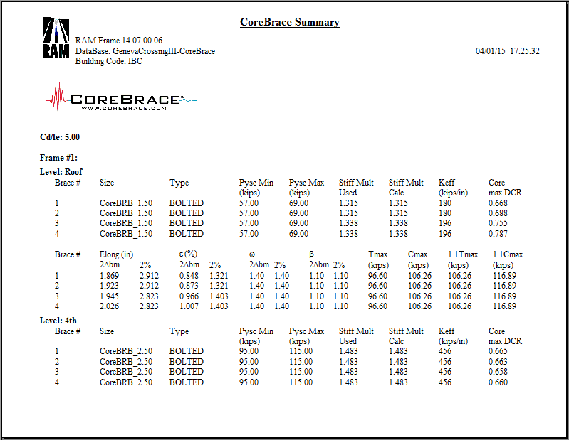 Note: Designs using the CoreBrace Buckling Restrained Brace should be reviewed and verified by CoreBrace. To assist in this process, upon completion of preliminary and/or final lateral designs using CoreBrace braces, users should send their RAM model (the “.rss” file) to CoreBrace (801-280-0701) at brandt.saxey@corebrace.com for verification and validation of the computer model. Upon completion of model review, CoreBrace will provide structural drawings (notes and details), including stamped/signed calculations for the specific project.