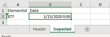 2. Locate the modified data Cells (In this case the Date of the Inspected Item)