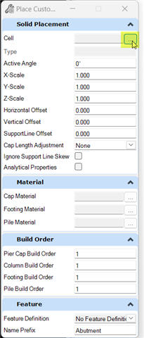 ANSWER: If you try to open the Place Custom Abutment (or Place Custom Pier) tool in a new file without an active bridge, you will see an informational dialog stating that no active bridge is selected.