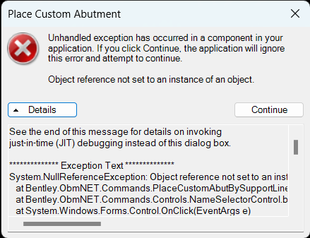 QUESTION: Getting a Microsoft .NET Framework error when opening the Place Custom Abutment/Pier cell dialog.