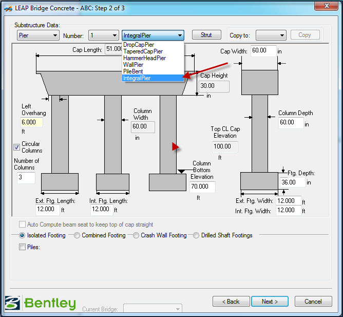 3) CIP Slab Bridge -- Integral Pier option is available in Substructure Dialog Box.