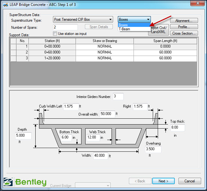 2) Post Tensioned Box/Tee Girders -- Integral Pier option is available in Substructure Dialog Box.