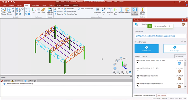 Furthermore, this version of iTwin Analytical Synchronizer is a prerequisite to allow for direct in-product (e.g STAAD, SACS, RAM) interaction with iModelHub via push/pull buttons in the sidebar (see Figure 5). For a general overview of iTwin and Engineering Analysis applications see iTwin Services for Engineering Analysis