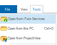 Figure 2 - File menu as shown in ITwin Anaytical Synchronizer (Open from iTwin Services)
