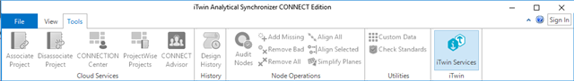 Access to iTwin Services is via Model Manager and can be accessed from the File menu (see Figure 2) or from Tools menu (see Figure 3).
