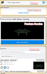 Previous Session: Displays a thumbnail of the last iTwin Design Review Session that you have accessed in the web browser. Click Open Last session to view iTwin Design Review Session in your default browser. Note that this is provided for information but may be related to a completely different model or project.