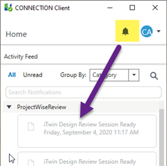 Additionally, note that notification that the design review session is ready will be reported in Connection Client and/or Email.
