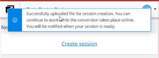 Figure 12 - Successfully created session message - with hyperlink to the created review session