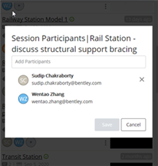 3) Session Participants - (Optional) Define additional participants. Clearly the power and benefit of a design review session comes from the collaborative effort of working with colleagues. They can be identified at this time or any time later once the session has been initiated.