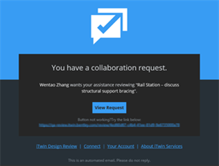 Figure 16 - Collaboration request email automatically sent by iTwin Design Review to all Session Participants.