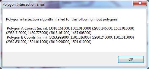 A second type of message saying, “Clipping a degenerate polygon” or “Too many intersection points” indicates a different type of polygon error.