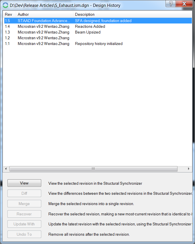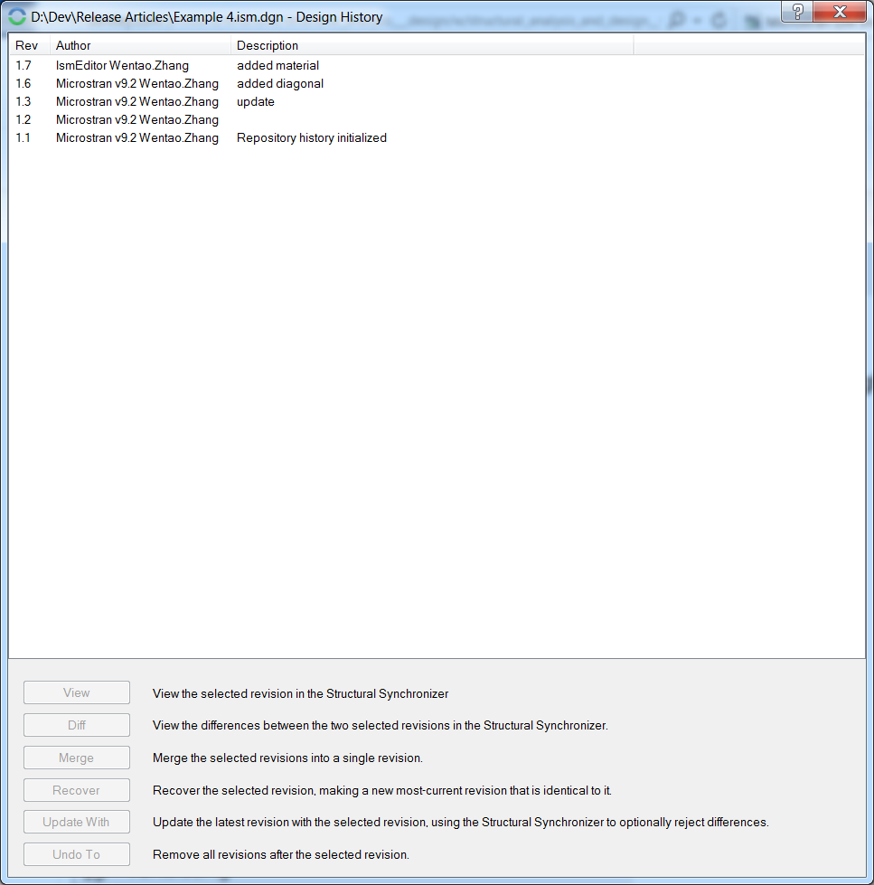 7. View “Diff” between 2 versions of the ISM Repository. ISM Manage revision tool is a robust design history management solution to your structural models.