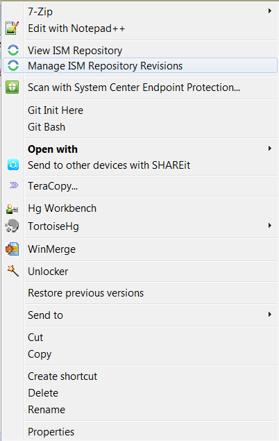 Within Windows Explorer, Select the ISM Repository you want to investigate, Right Click à Manage ISM Repository Revisions