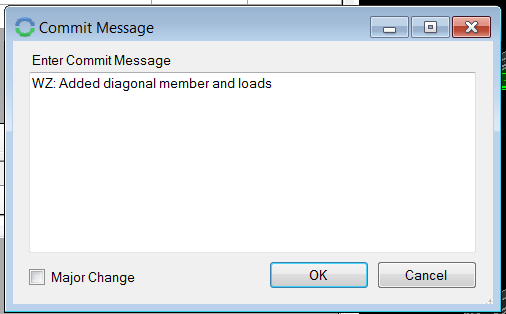 5. You will be presented with a commit message dialog, this allows you to enter a message to remind yourself later on what was modified or added for this commit.