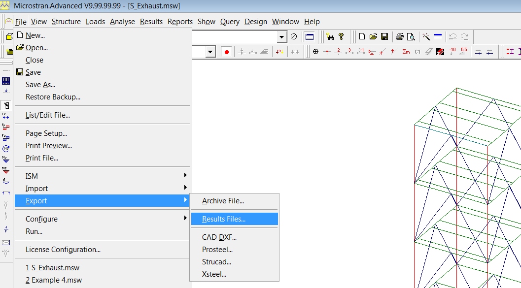4. Re-run the linear analysis in Microstran, making sure design works, once completed, Export the Reaction Files to the local directory.