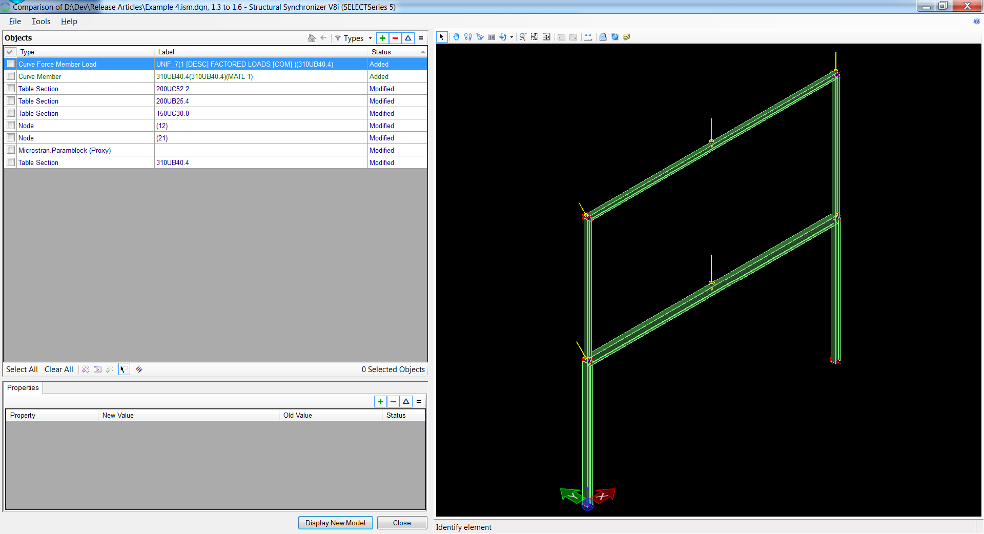 2. Select Example 4.ism.dgn, accept all default settings and select "Start", structural synchronizer should launch with the below view.