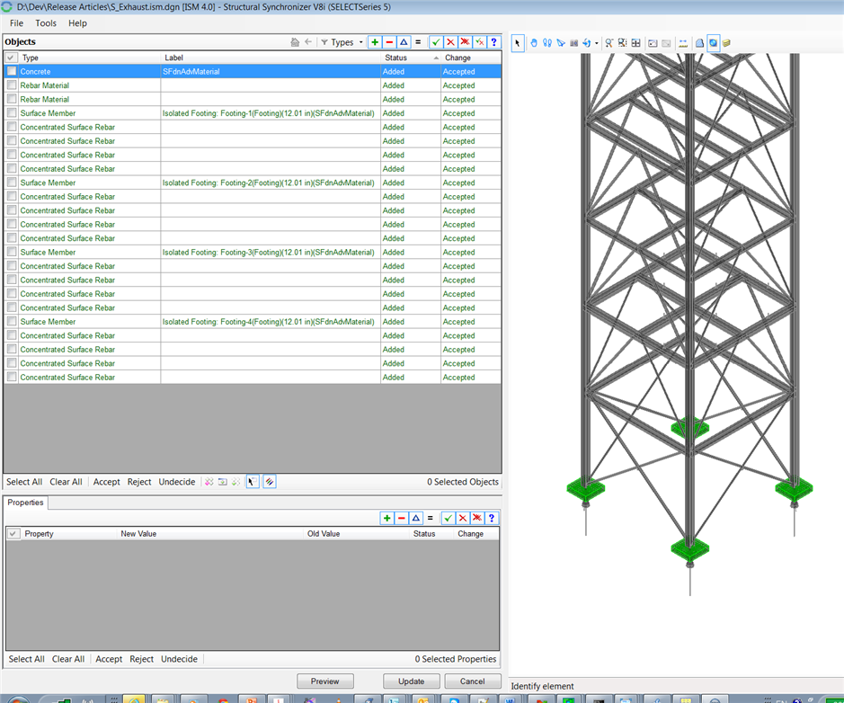 5. Go to File --> ISM--> Update From ISM Repository, select the “Example 4.ism.dgn” and hit Start