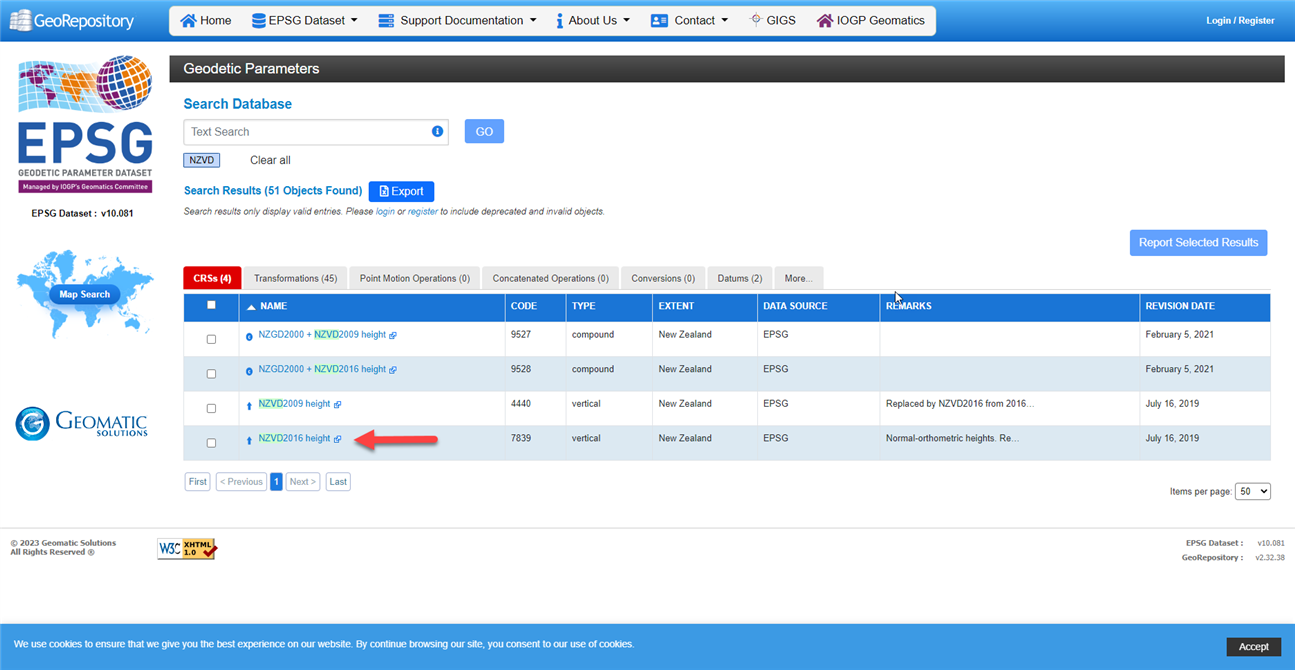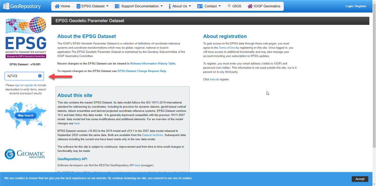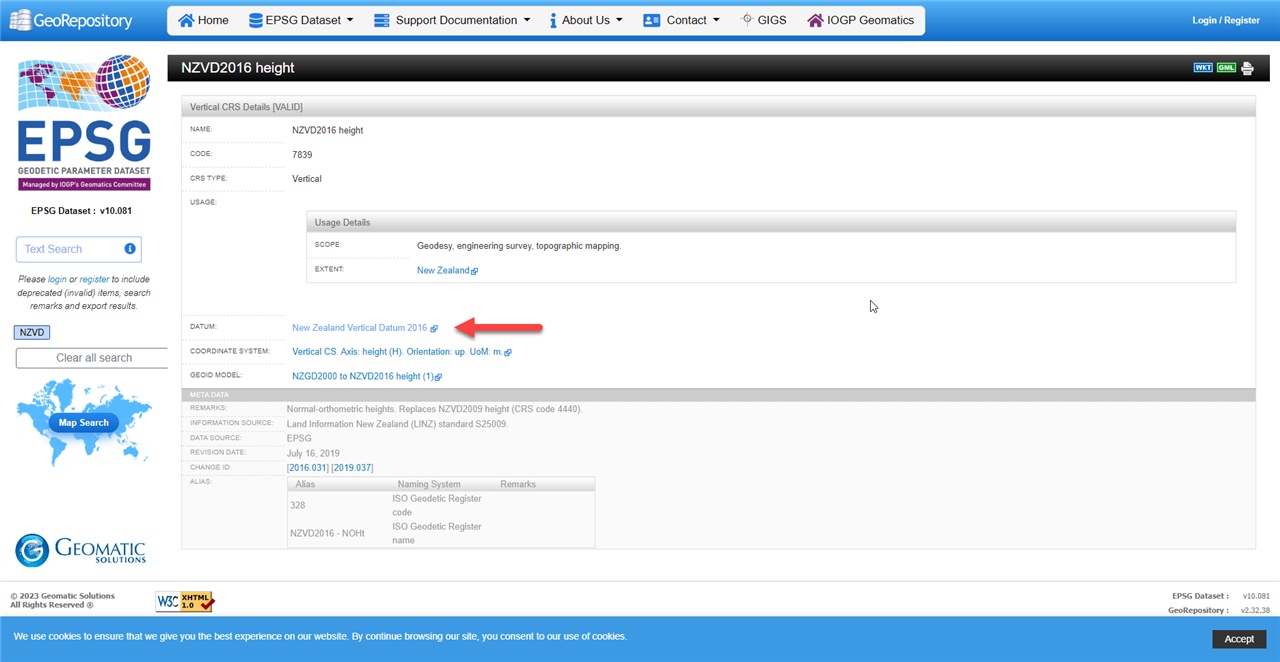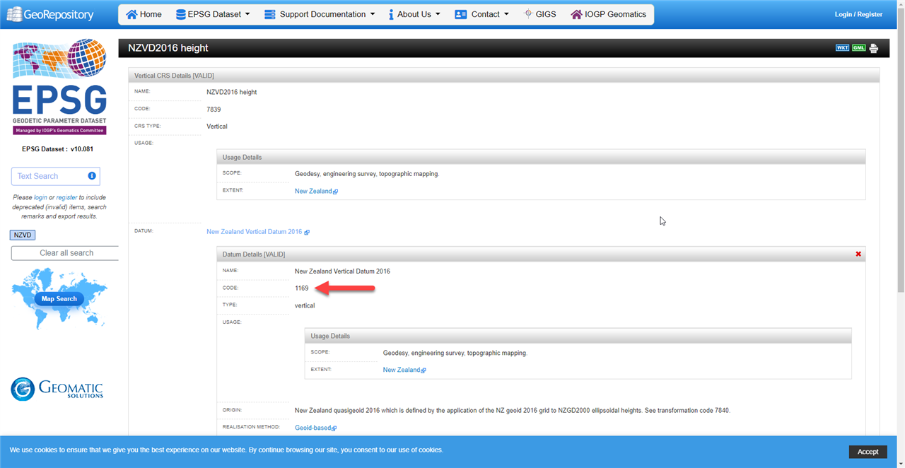 · In the search box enter the country code for vertical datum you wish to search. In the case NZVD for "New Zealand vertical datum"