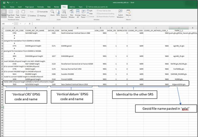 · The resulting name must be implemented in column D (DATUM_NAME). In this example "New Zealand vertical datum 2016"