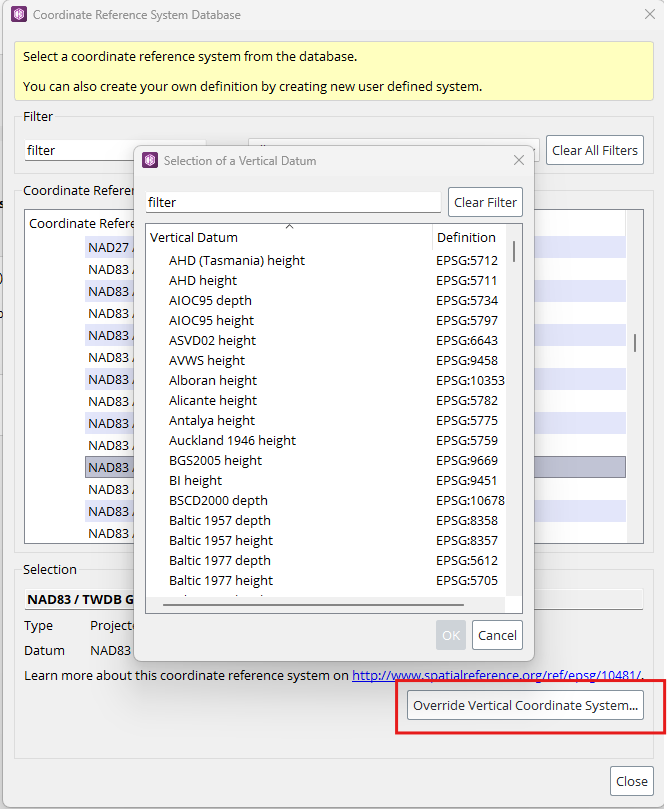 · In the data/gdal folder of the installation, locate the vertcs.override.csv file and copy it in your CRSData folder (see “Sharing resources through the CRSData folder” section above for more information).