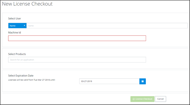 'New License Checkout' seçeneğini seçin ve yeni bir lisans için tanımlı bilgileri girin.