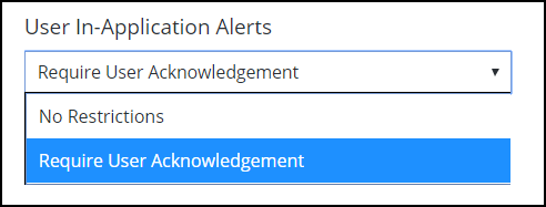 Kullanıcının uyarıyı kabul etmesi gerekip gerekmediğini seçin.No Restrictions (Kısıtlama yok), kullanıcının uyarıyı onaylamadan devam etmesine izin verir.