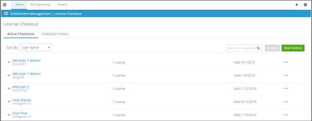 Yönetici, mevcut ve geçmiş lisans checkout işlemlerini görmek için bu sayfayı kullanabilir ve yeni bir lisans checkout işlemi yapabilir.