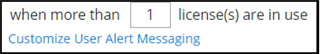 Then select the license threshold for when the alert will occur. You should set a threshold that reflects your company policy. If you wish to reduce the risk that a Term License is issued for this product, you should set the threshold to be at or below the number of licenses held for this product. Otherwise you can set it to the number of licenses (perpetual + term) that you wish to allow.