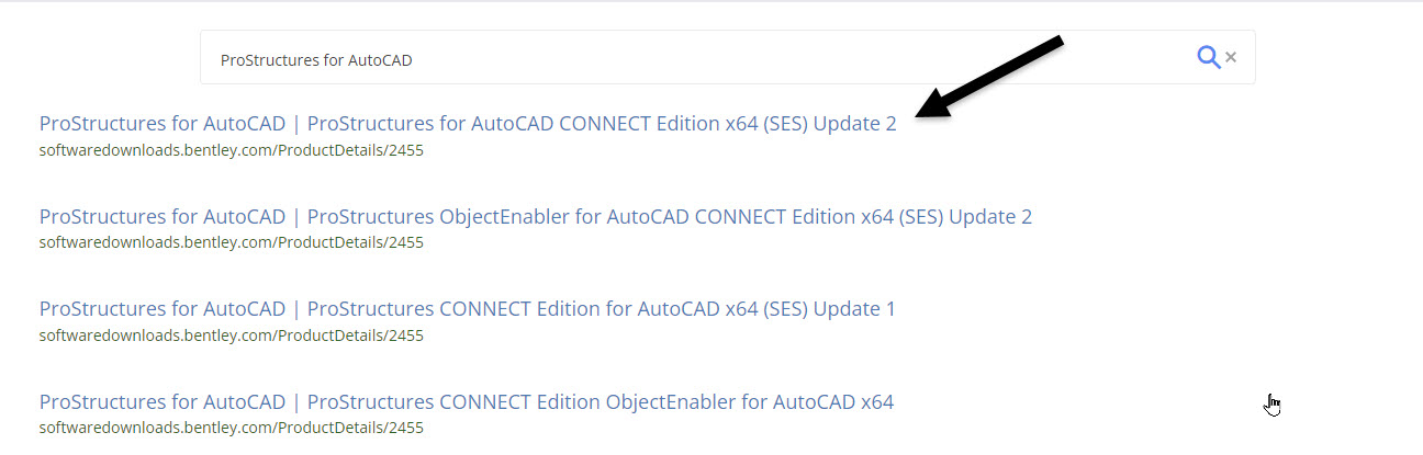 - Auf der Download Seite oben rechts die Suche verwenden, ProStructures eingeben und dann in der Liste ProStructuresfor Autocad anklicken.