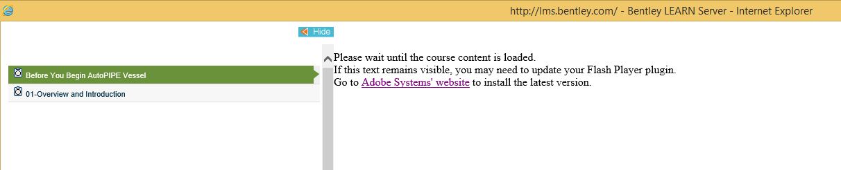 Ouvrez Internet Explorer, allez dans outil (Alt X) > Paramètres d'affichage de compatibilité > Tapez "bentley.com" dans la case puis cliquez "Ajouter" puis fermez.