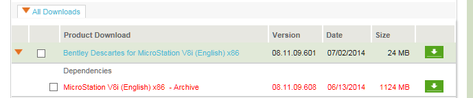 Click on the gray arrow and you will see the MicroStation Dependencies for Descartes
