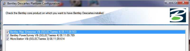 You will need to download Descartes if it has not been downloaded and the compatible version of MicroStation installation files.