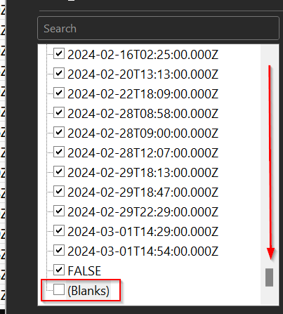 With all of the users visible on the spreadsheet again, in the LastLoginDate column go down to the bottom of the view and remove the users which have never signed in by removing the selection for Blanks: