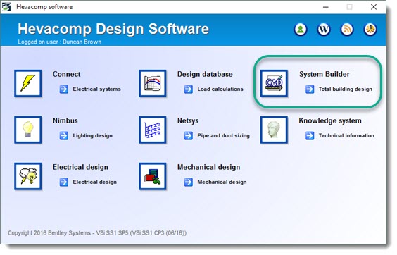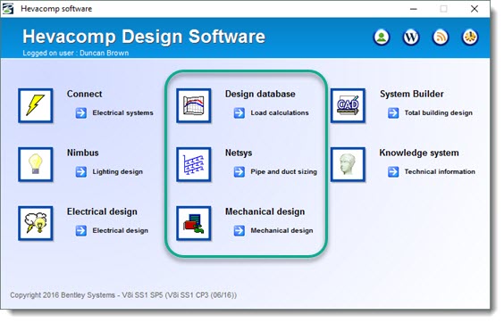 Mechanical DesignerAllows acces to Design Database, Netsys Pipe and Duct Sizing and ancialliary programs in the Mechanical design section |