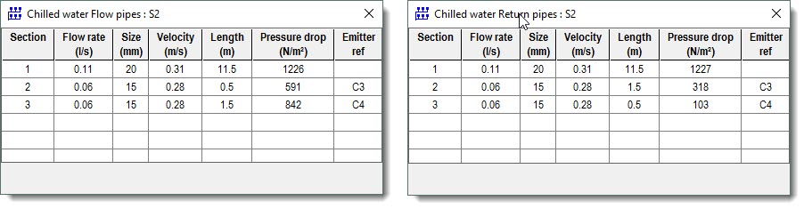 Pipe notes will show flow pipe numbers in black, and return pipe numbers in red. Twin pipe is reflected in both reports.