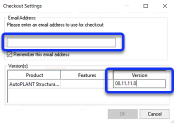 Im folgenden Dialog Ihre e-mail Adresse eintragen und die Versionsnummer von ProSteel.
