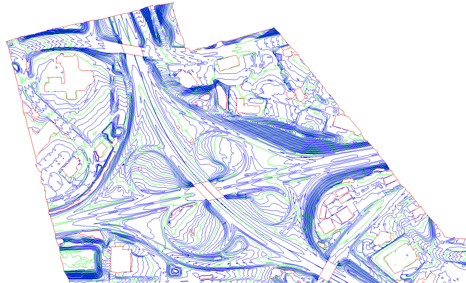 You can use terrain modeling and terrain modeling tools to automate elevation allocation. You can conveniently trace and display the surface water flow direction across any terrain, ensuring proper location of inlets and other drainage infrastructure.