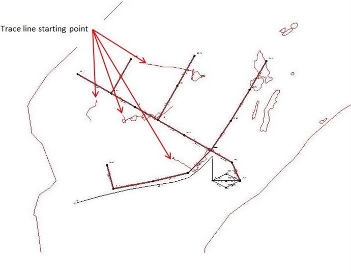 After you set the value, you can select a point in the model within the terrain boundary and the software will draw the trace lines.