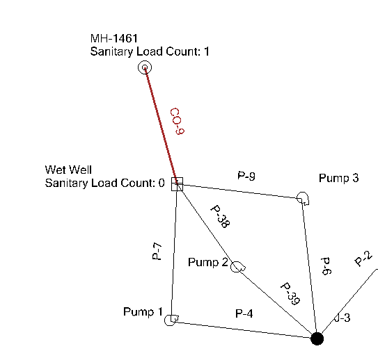 3) A wet well with a sanitary load. Remove the sanitary load that is directly on the wet well and add it to a manhole upstream of the wet well or create a dummy manhole directly upstream and connect it to the wet well.