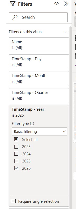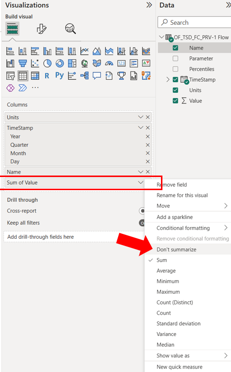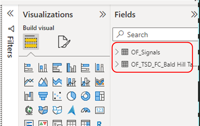 Once the data are loaded, they appear as a table under Fields panel. Depending on the Digital Twin connected, the name of the tables may differ.
