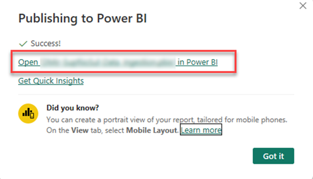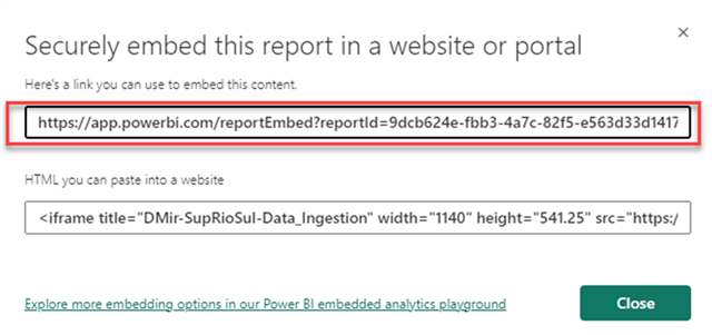 Please note that reports needs to be published to the power BI cloud in order to be embedded inside WaterSight.