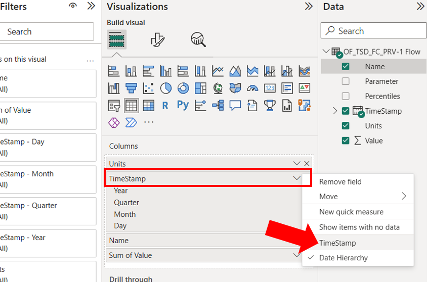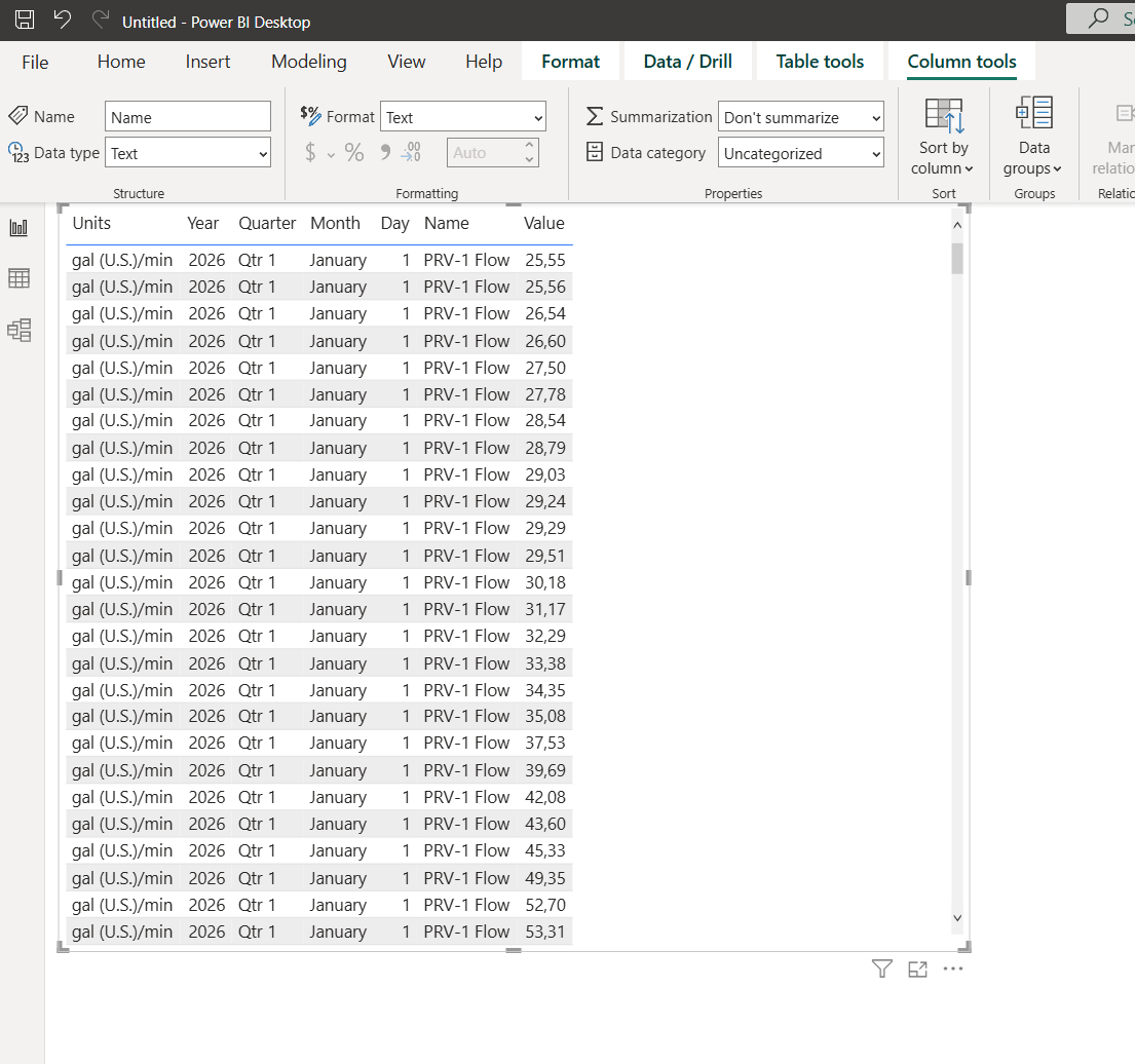 The OpenFlows connector comes already with predefined tables and data that can be easily used to create the PowerBI reports: