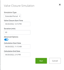 Clicking in the Simulate button it will open a dialog to run the steady state or extended period simulation with the some user defined settings.
