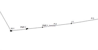 Pumps are seen as link elements in SWMM, whereas CivilStorm and SewerGEMS see them as nodes. Therefore, on export to SWMM, a new link element must be created to use as the pump. To do that, two overlapping junctions are created to connect to it. The link in SWMM will have the same name as the pump did in CivilStorm or SewerGEMS. In SWMM, an icon will display for the pump, but when trying to double-click on it, the junction could be selected by mistake.
