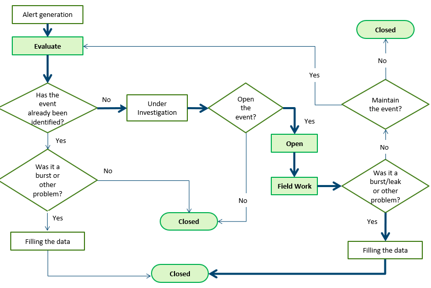In the diagram below it is presented the detailed workflow for managing alerts generated by the software:
