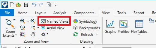 Named Views allows you to zoom directly to certain parts of the model quickly. For instance, if you want to save a view near a pump, but do not want to use the Zoom functions to constantly go back and forth between the view of the pump and the whole model, Named Views can be very useful. To use this, go to the View tab and choose Named Views.